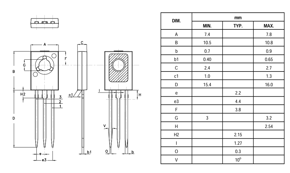 ترانزیستور BD437 پکیج DIP یک ترانزیستور BJT نوع NPN با پکیج SOT-32 است