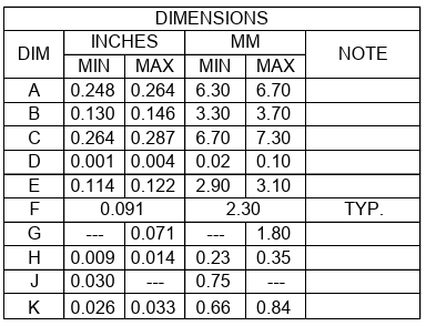 | 55C ~ +150C- | TSTG (بازه دمایی) |