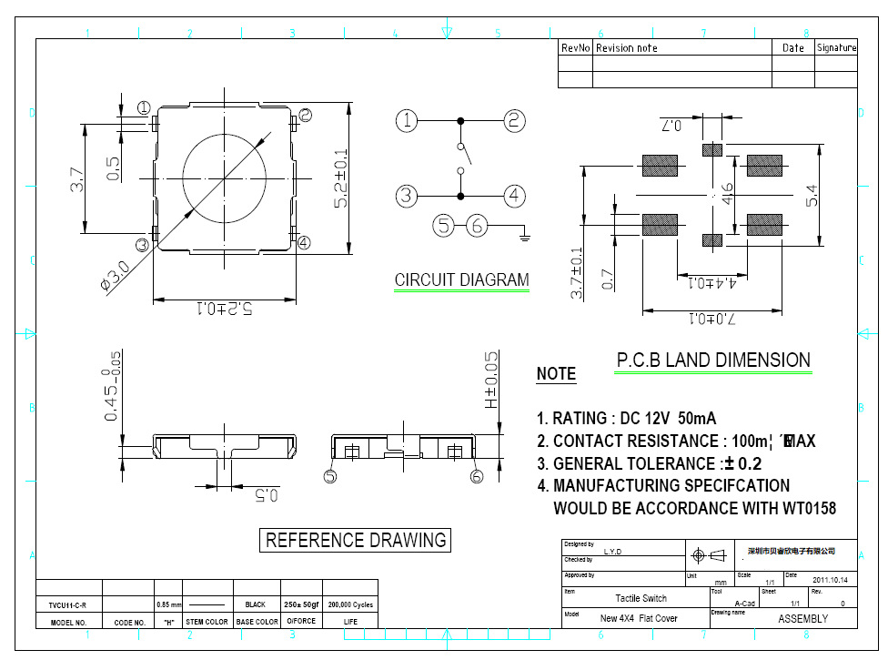 تک سوئیچ 5x5x0.8 4PIN SMD