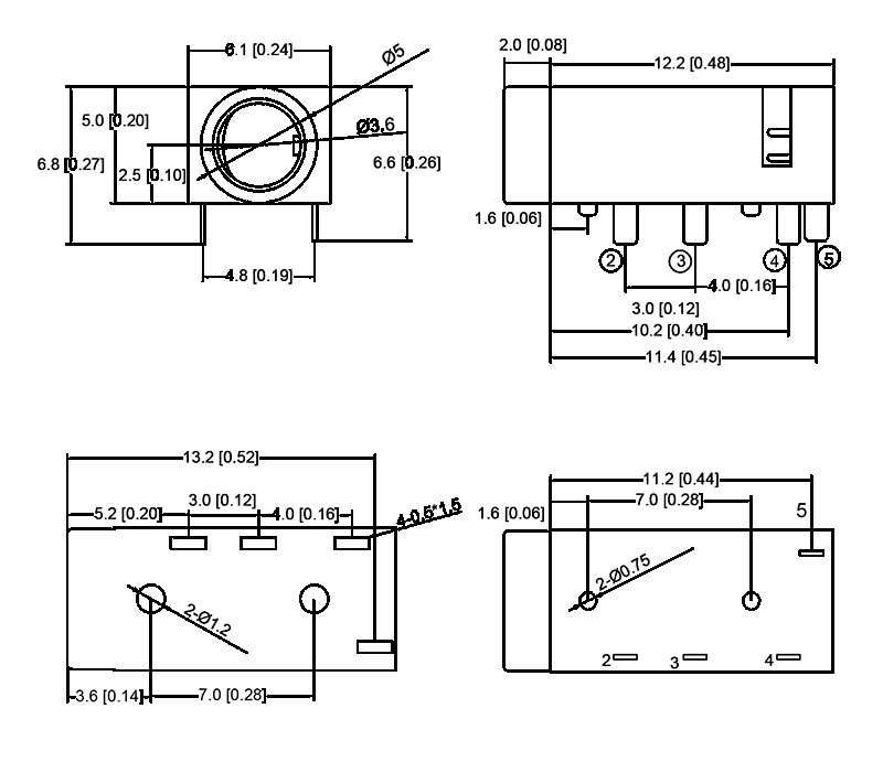 دیتا شیت جک هدفون استریو روبردی PJ-320A 3.5mm