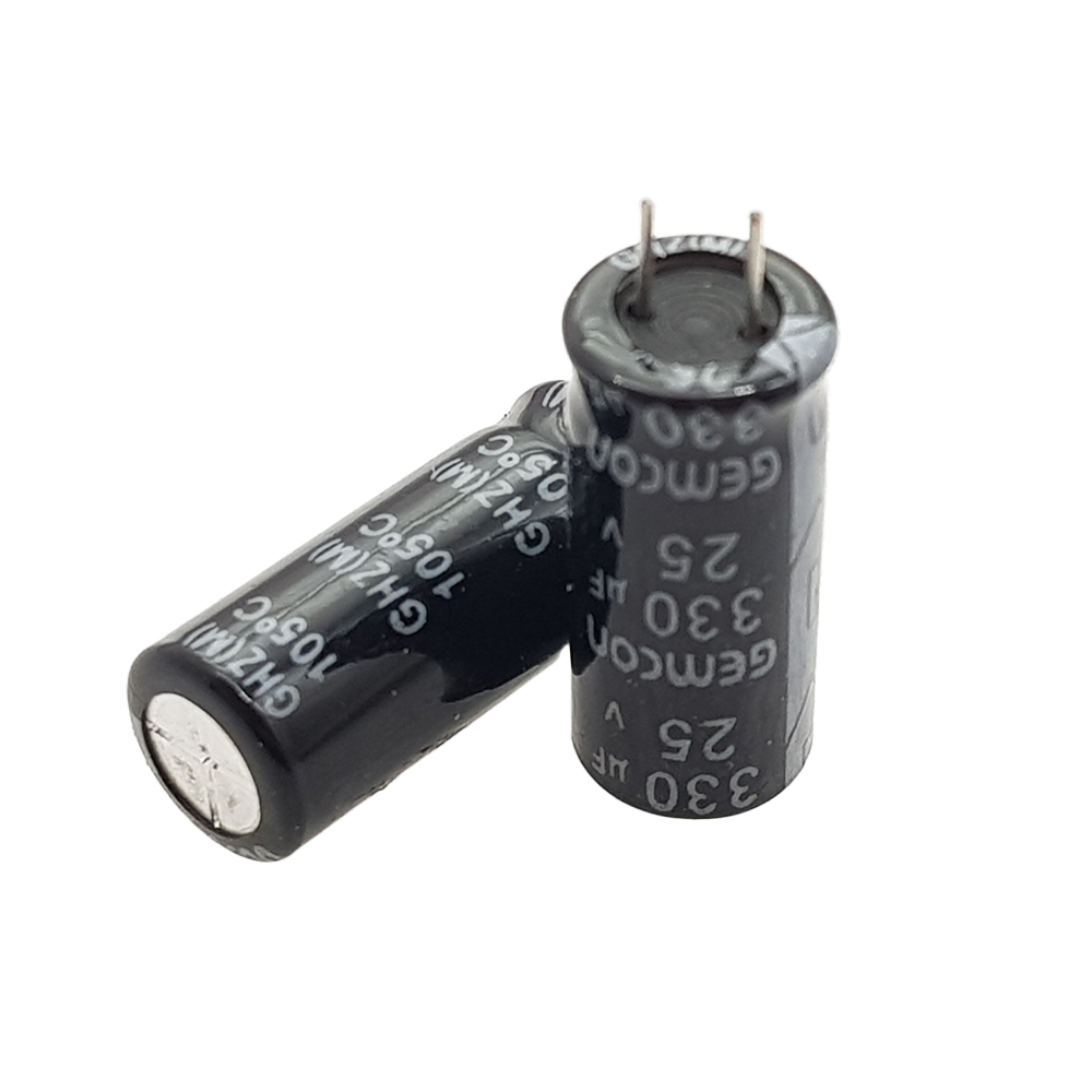 خازن الکترولیت GEMCON 8x20 330uF-25V پایه کوتاه