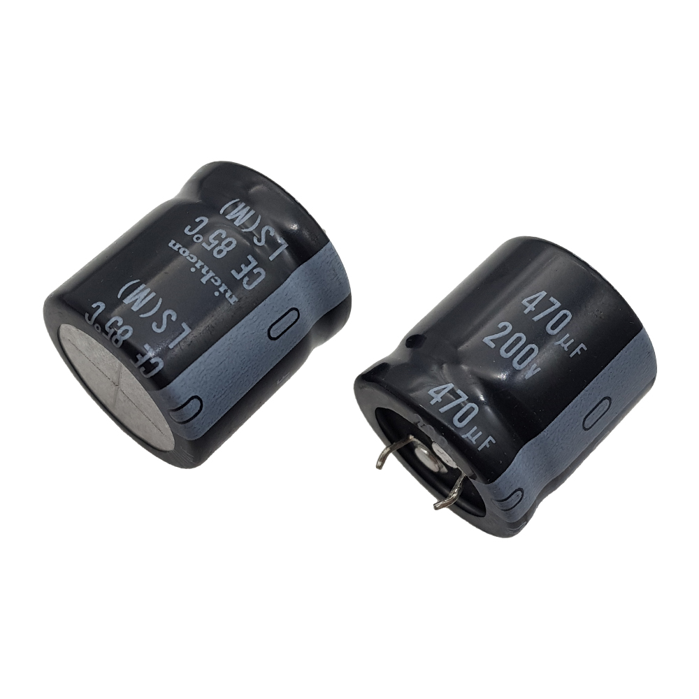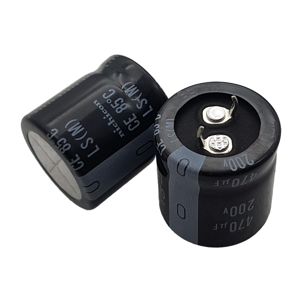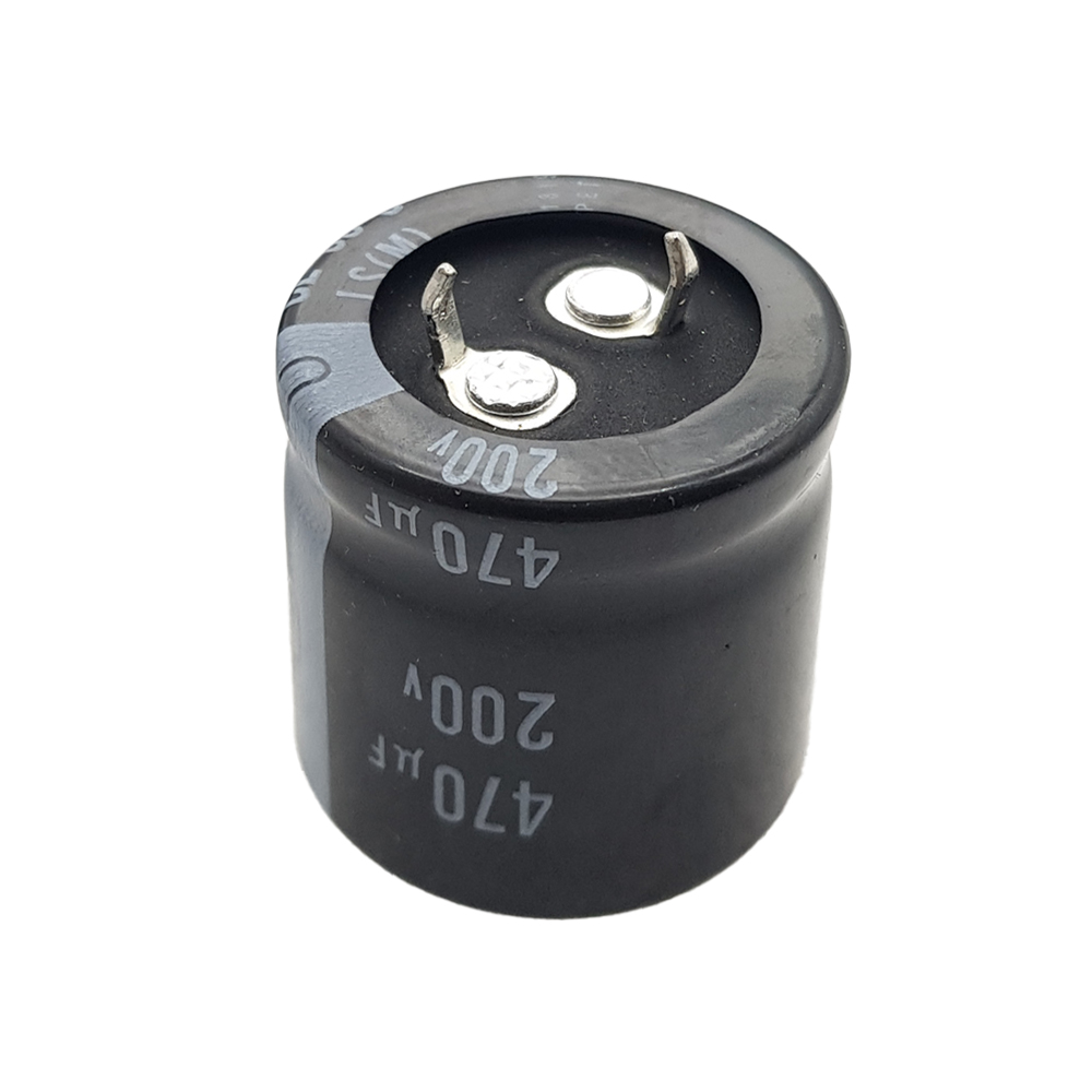 خازن الکترولیت 470 میکروفاراد با ولتاژ کاری 200 ولت و ابعاد 25x25 میلی متر برند NICHICON