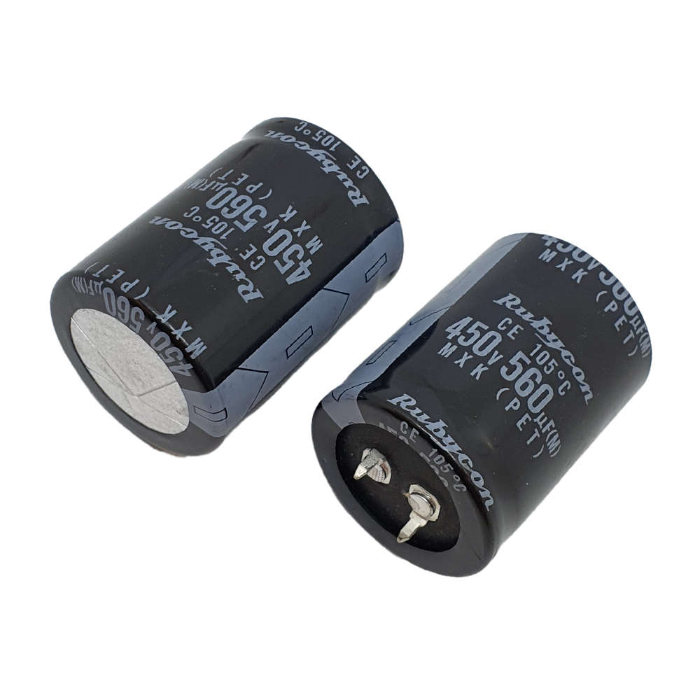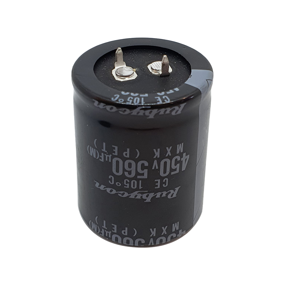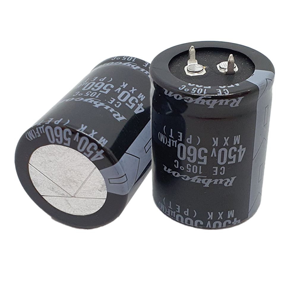 خازن الکترولیت 560 میکروفاراد با ولتاژ کاری 450 ولت و ابعاد 30x40 میلی متر برند RUBYCON