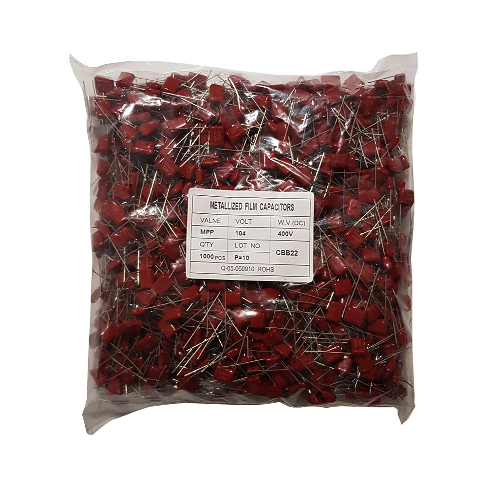 خازن پلیستر 104 ظرفیت 100 نانو فاراد 400 ولت با فاصله پایه 10 میلی متر