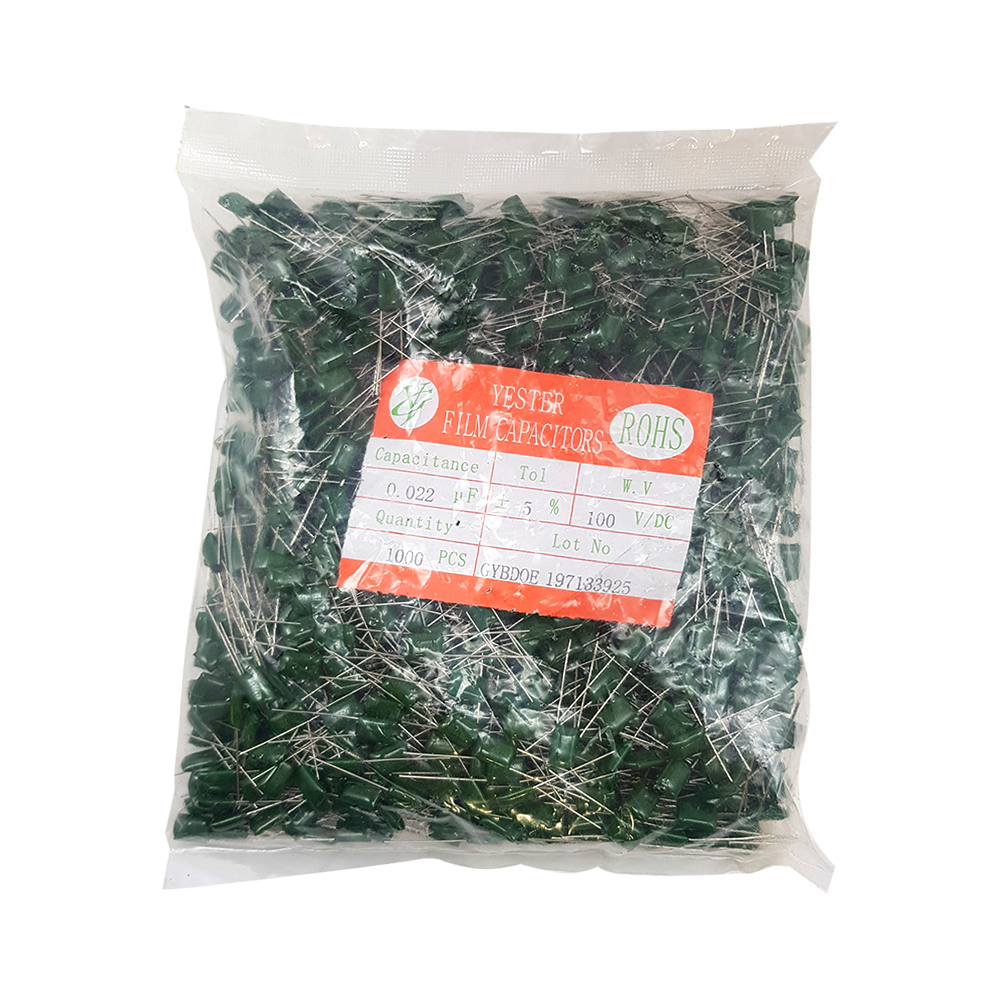 خازن پلیستر 223 ظرفیت 22 نانو فاراد 100 ولت با فاصله پایه 5 میلی متر