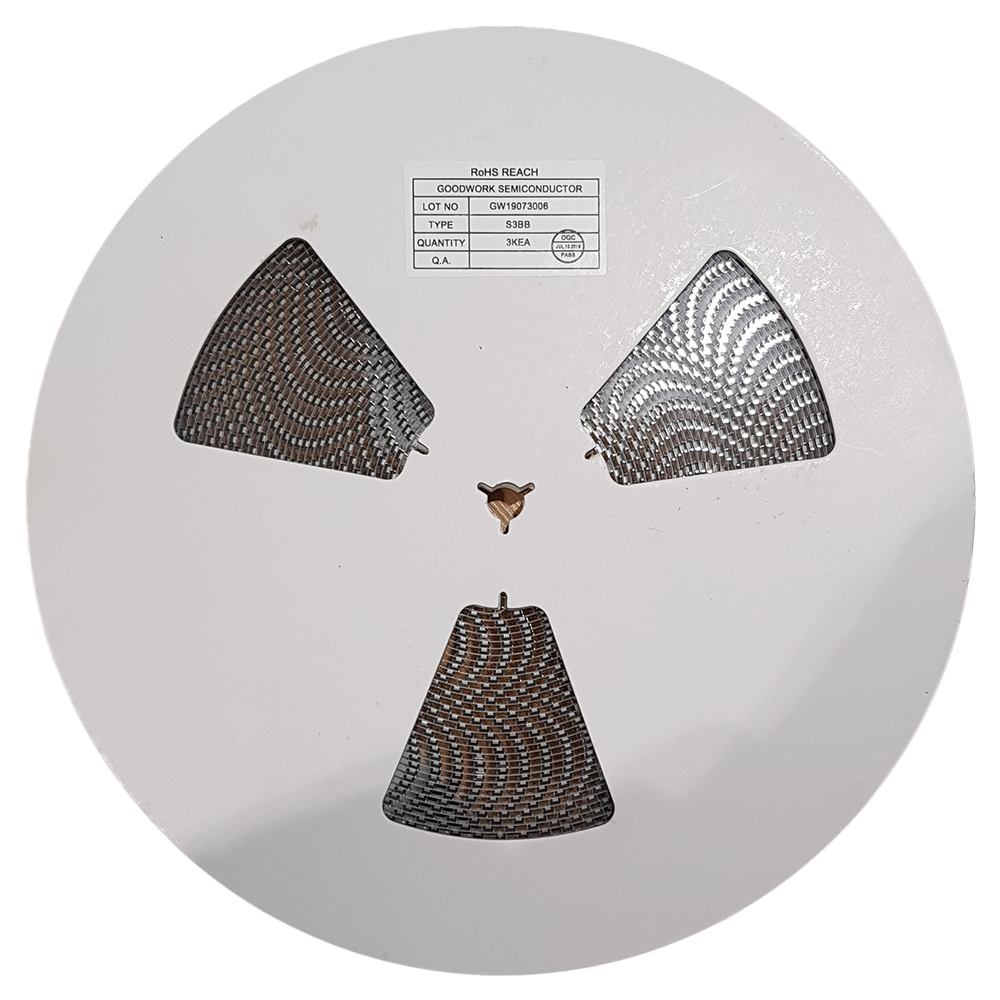 دیود GOODWORK S3BB SMB SMD یک دیود رکتیفایر سیلیکونی (Rectifier Diode) از نوع نصب سطحی (SMD) با پکیج SMB (DO-214AA) است. این دیود برای یکسوسازی جریان در منابع تغذیه، شارژرها و مدارهای قدرت بهکار میرود.