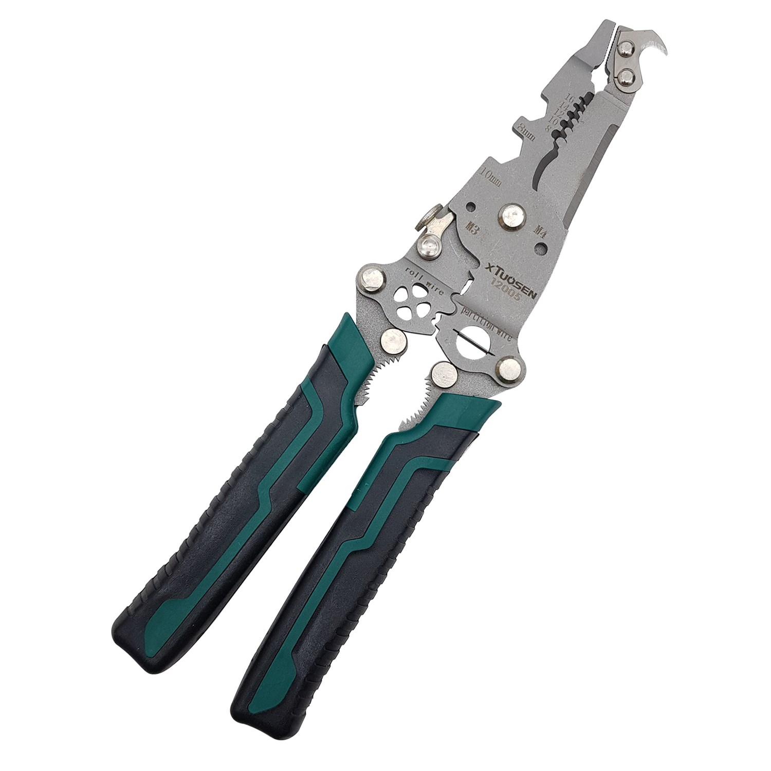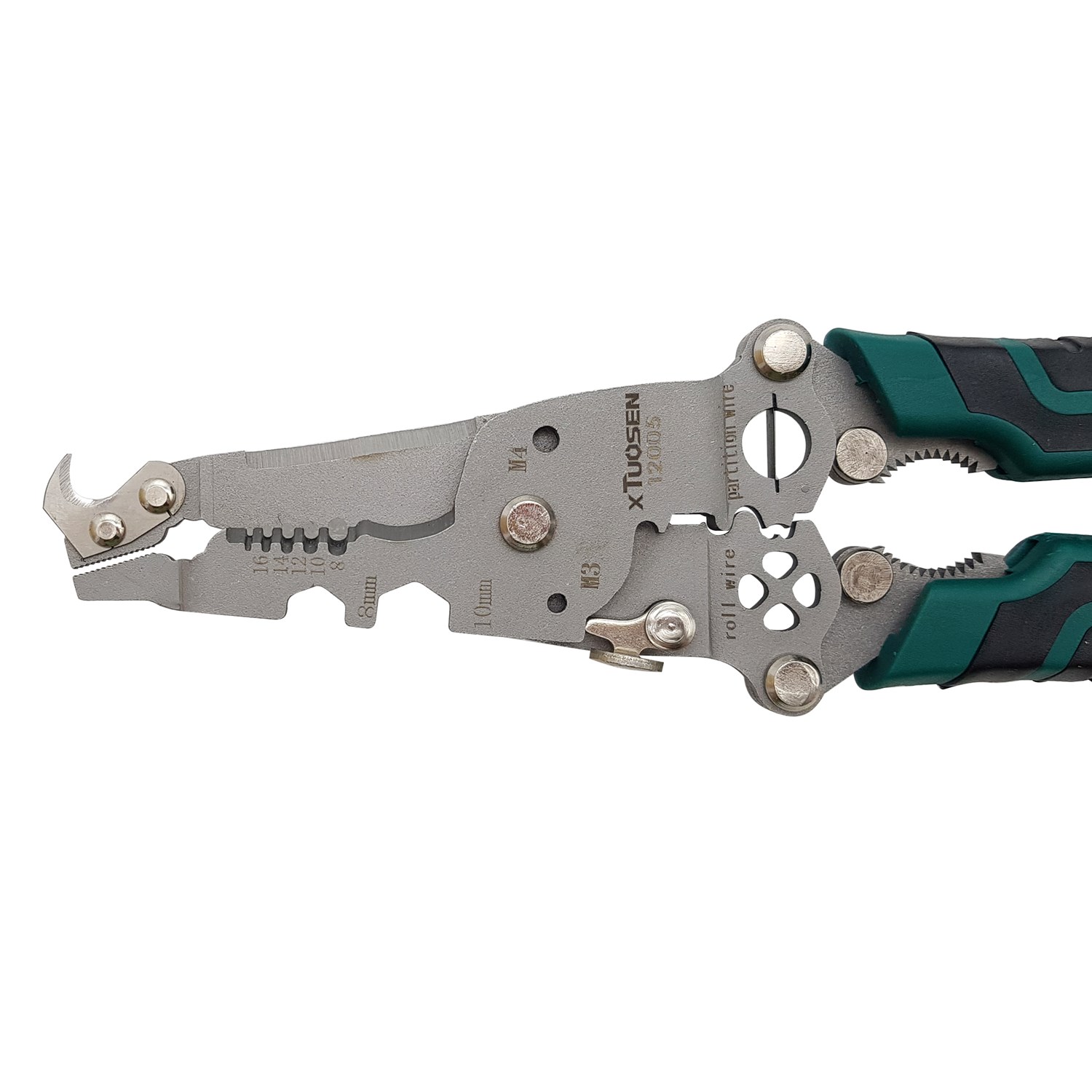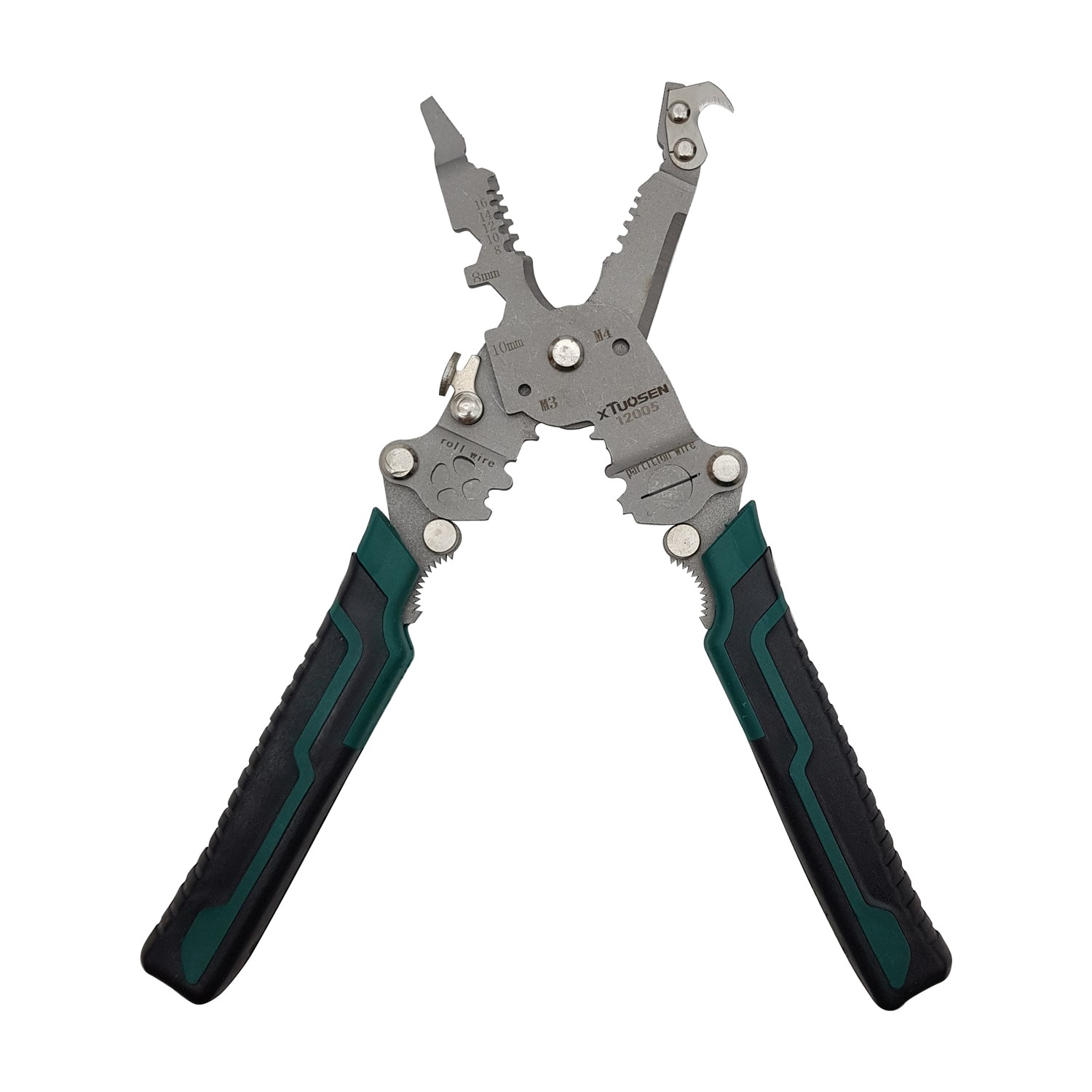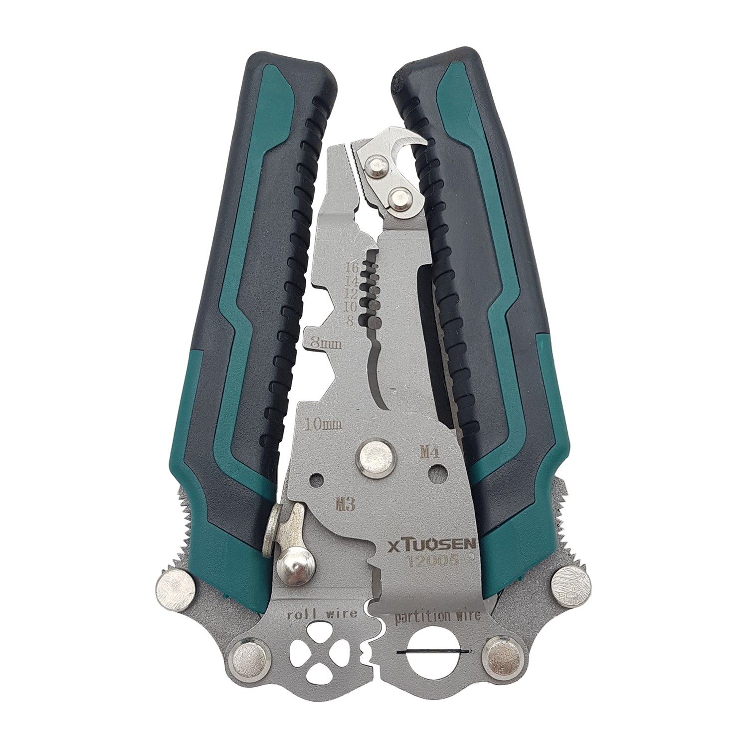 کاربرد TUOSEN 12005: لختکردن سیم، برش کابل، پرس سرسیم، کوتاهکردن پیچهای M3/M4 و باز کردن مهرههای 8 و 10 میلیمتر و ...