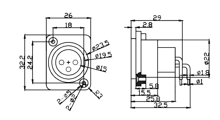 فیش کنون مادگی XLR رو پنلی پایه روبردی