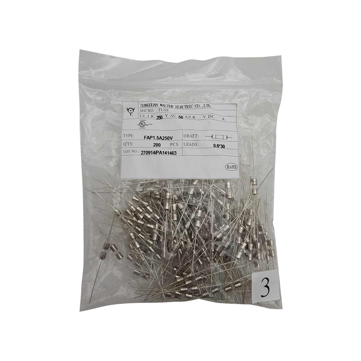 فیوز شیشه ای سریع سوز 1.5 آمپر 250 ولت