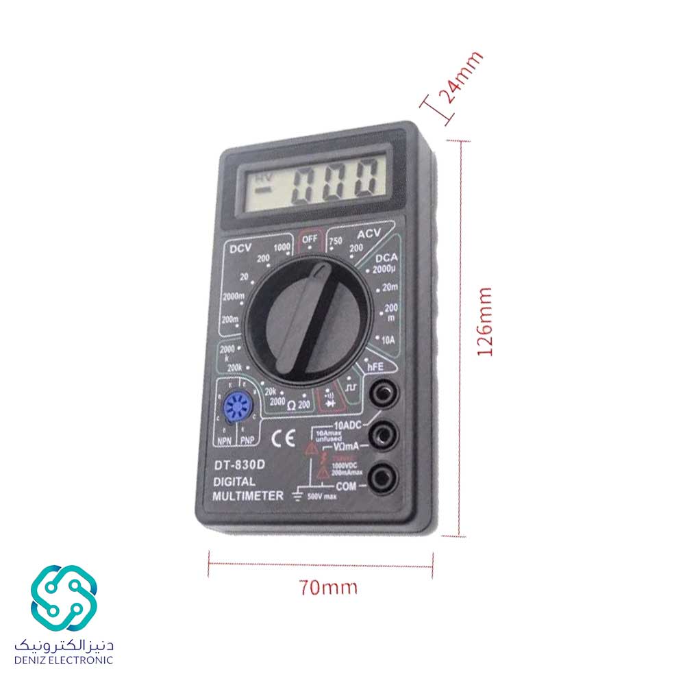 مولتی متر DT-830D یکی از مولتی مترهای موجود در بازار ایران که به علت قیمت ارزان وکارایی بالای خود امروزه مورد توجه تعمیر کاران ، دانش آموزان و غیره... قرار گرفته است.
