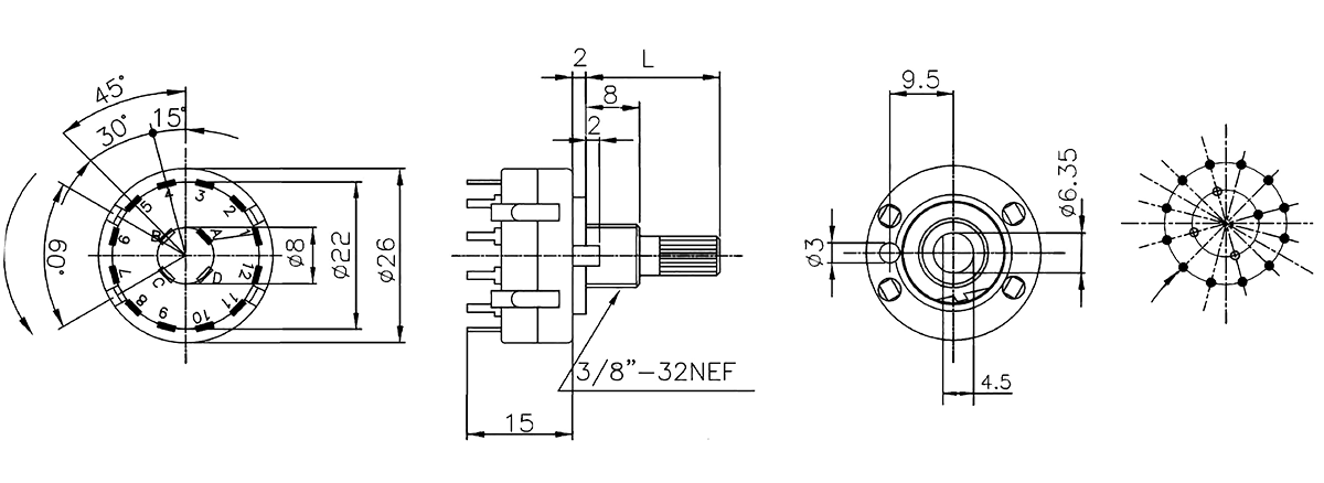 دیتا شیت کلید سلکتور 26 میل شش حالته 2 پل