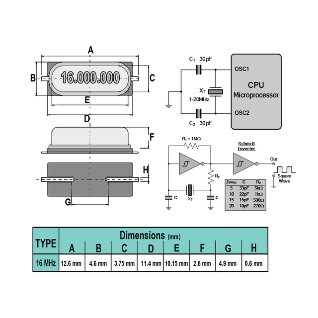 در مدارات الکترونیکی برای تولید فرکانس دقیق 16 مگاهرتز بهکار میرود