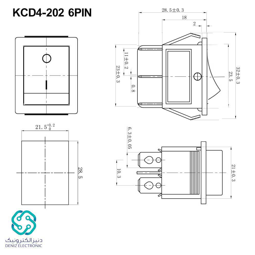 کلید راکر بزرگ دوحالته 6 پین مدل KCD4-202